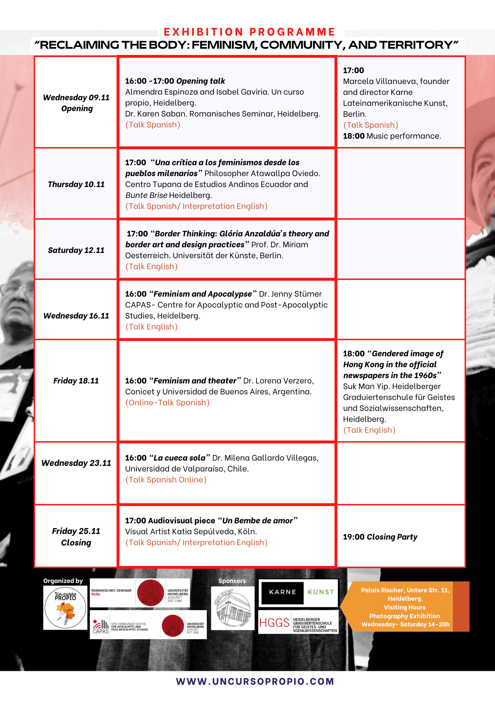 Abgeschlossen wird das Event mit einer Party im Barockgarten, samt Buffet und Livemusik. Es ist keine Anmeldung erforderlich. Ebenfalls besteht keine Verpflichtung zu ganztägiger Anwesenheit, vielmehr sind Sie herzlich eingeladen, zu den Vorträgen, für die Interesse besteht, zu kommen.