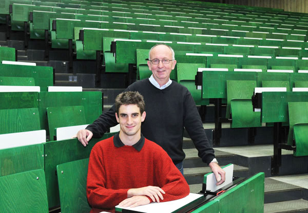 Seit 1932 ist der Name Siebig fest mit der Universität Heidelberg verbunden: Franz, Hans-Georg und nun auch Stephan – diese drei Siebigs gestalten seit über acht Jahrzehnten das Geschehen am Physikalischen Institut der Ruperto Carola mit. „Das muss wohl in den Genen liegen“, meint der mittlere der drei, Hans-Georg Siebig, mit einem Augenzwinkern (hier mit Sohn Stephan, Foto: Hentschel). Er selbst arbeitet bereits 48 Jahre an der Universität, seit 1979 als leitender Vorlesungsassistent in der Physik.
