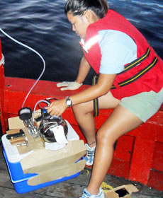 Die Küstenbereiche des tropischen Westpazifik produzieren in großem Ausmaß natürliche Halogenverbindungen, die die Ozonschicht schädigen können. Das zeigen erste Ergebnisse einer Feldmesskampagne (Foto: Institut für Umweltphysik), die im südchinesischen Meer im Zuge des internationalen Forschungsprojekts SHIVA vorgenommen wurde. Die Wissenschaftler des interdisziplinären Projekts, dessen Gesamtkoordination beim Institut für Umweltphysik der Ruperto Carola liegt, untersuchten im November und Dezember auf den Hoheitsgebieten von Malaysia, Brunei und den Philippinen die ozeanischen Quellen und atmosphärischen Transportwege der natürlichen Chlor-, Brom- und Jodverbindungen.