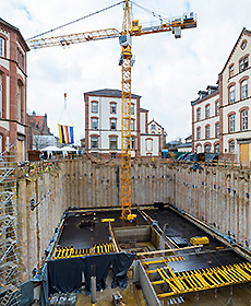 Hier bildet die Universität Heidelberg künftig eine neue Generation von Asienspezialisten aus, welche die wachsenden globalen Herausforderungen umfassend verstehen und erforschen sollen: Auf dem Campus Bergheim entsteht derzeit das Centre for Asian and Transcultural Studies (CATS), ein Areal für Forschung und Lehre, das als „Kollaboratorium“ konzipiert ist und einen Bibliotheks-Neubau umfassen wird, der sich vier Stockwerke tief in den Boden erstreckt (Foto: Rothe).